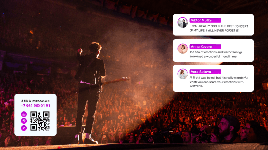 Receive and visualize audience greetings to participants. Votings and ratings with the unlimited number of participants.